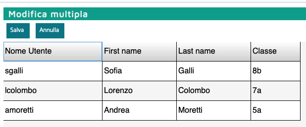 - «Elimina» per eliminare studente; «Modifica» per cambiare; «Nuovo» per aggiungere singolo (Link).