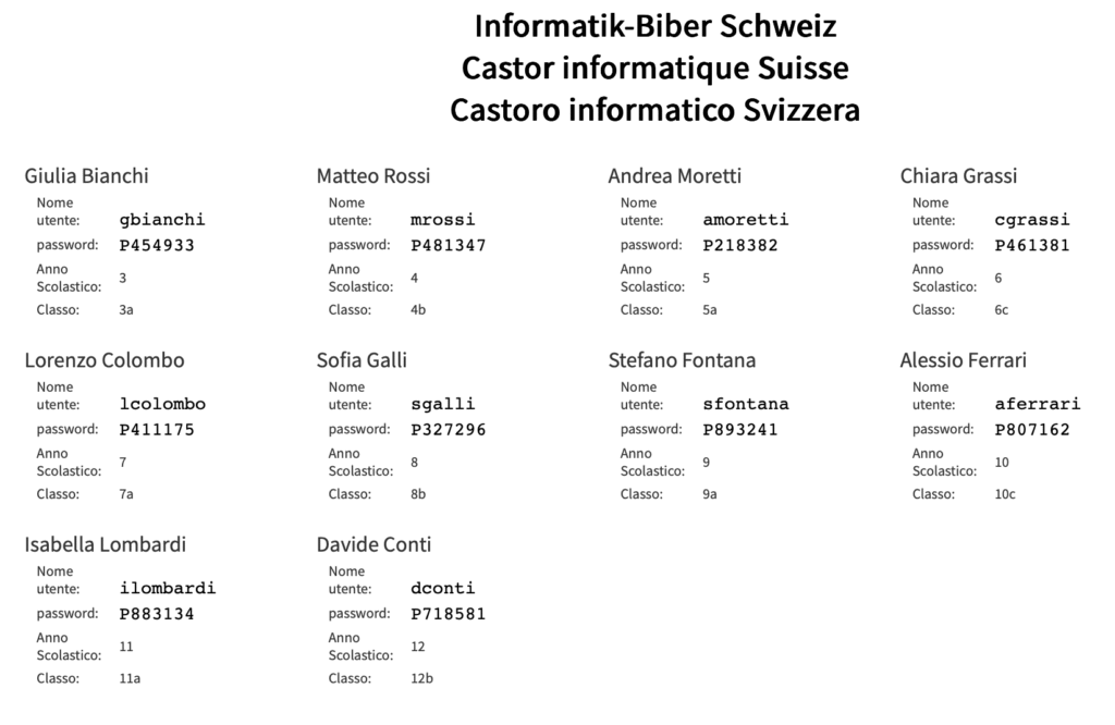 - Scaricare username e password degli studenti prima delle settimane del concorso !