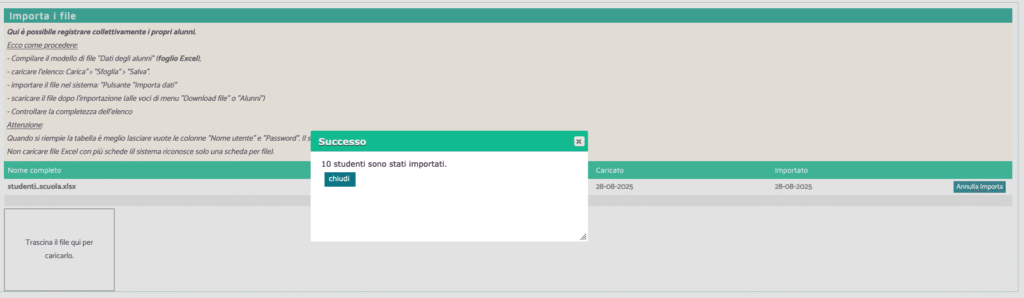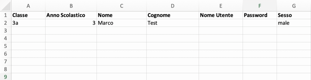 - Inserite tutti i dati degli studenti nello stesso foglio. Se volete separarli per classi/gruppi, utilizzate file distinti.