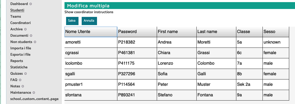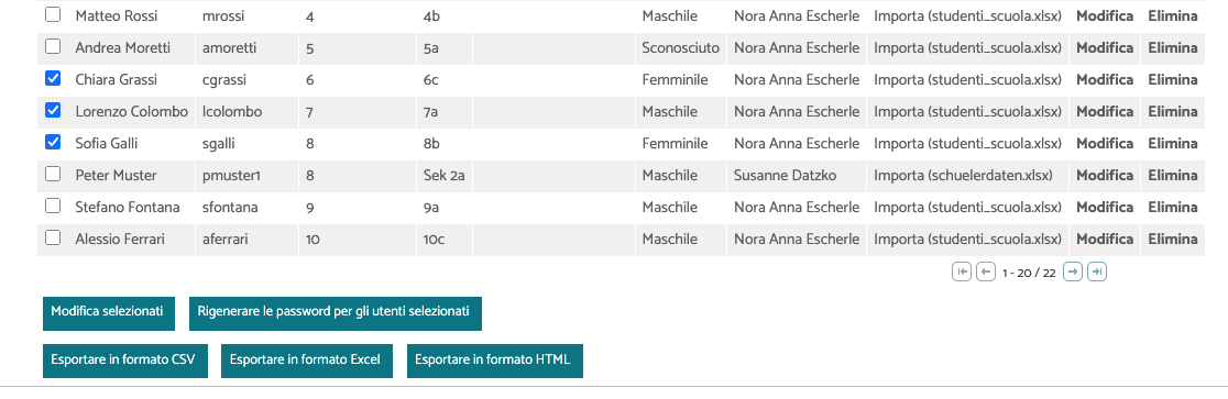 Nel menu “studenti” potete modificare i login selezionati.
